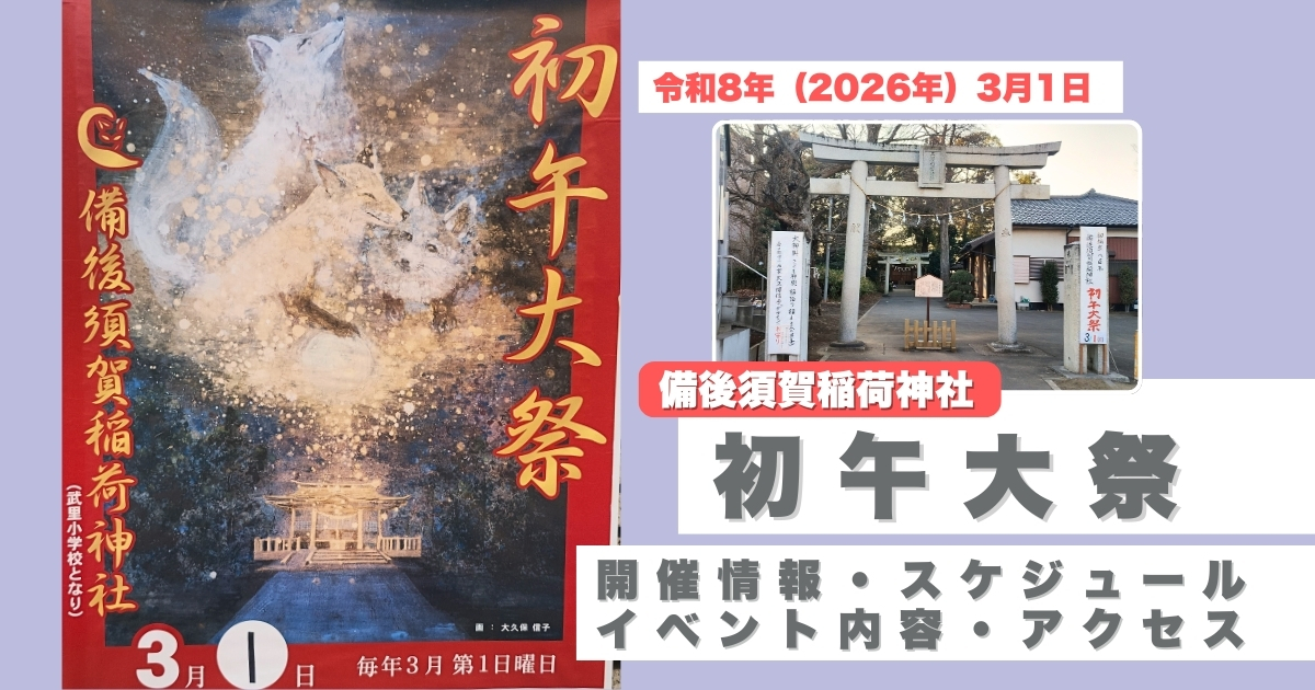 春日部市・備後西地区にある備後須賀稲荷神社の「初午大祭」が令和8年(2026年)3月1日(日)に開催されます。