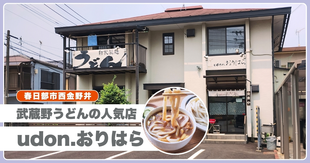 春日部市西金野井の住宅街、千葉県との県境にも近いエリアに武蔵野うどんの人気店「udon.おりはら」があります